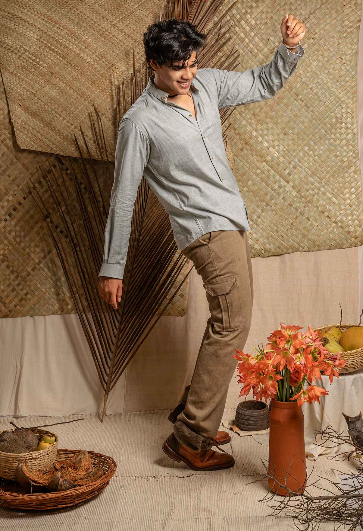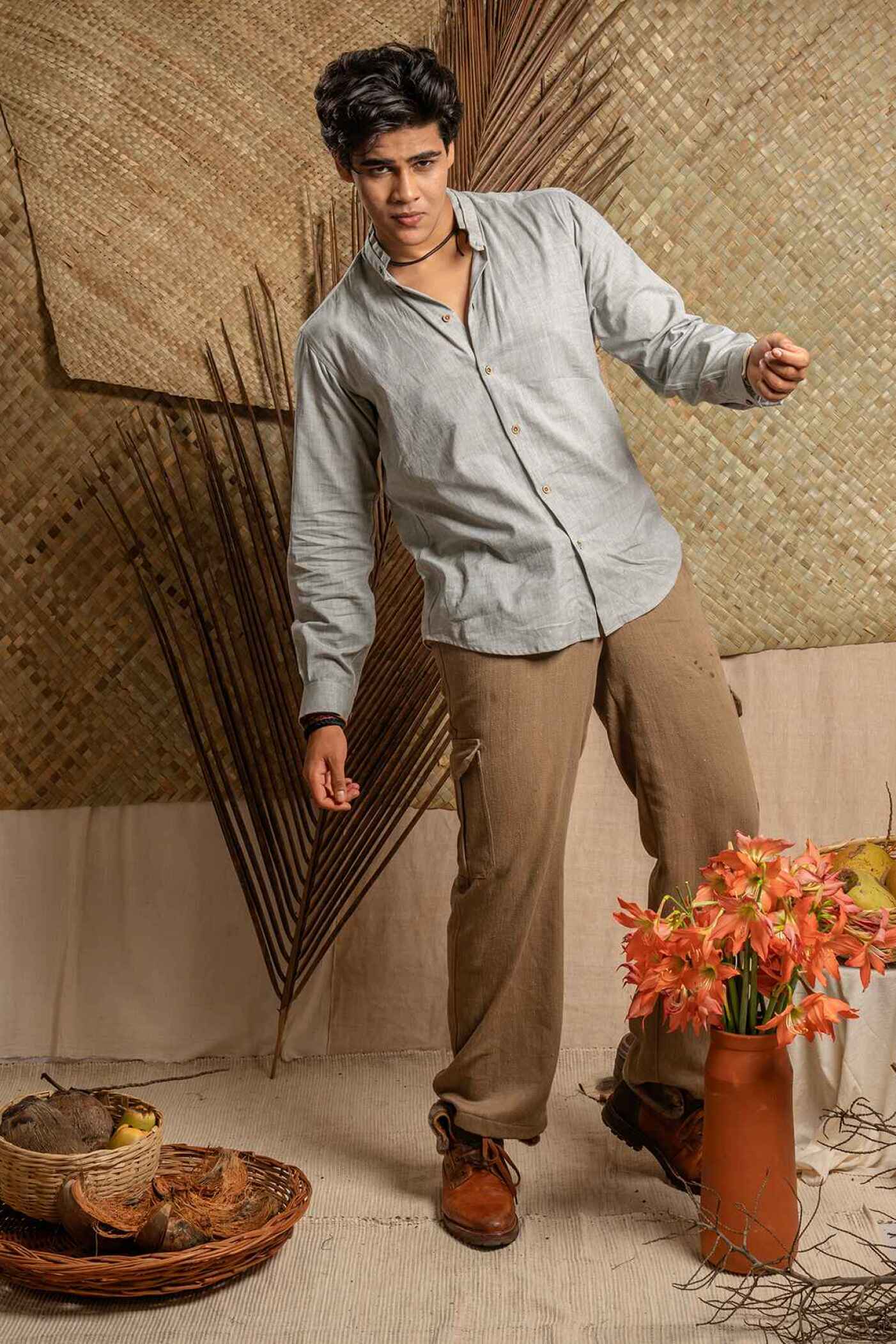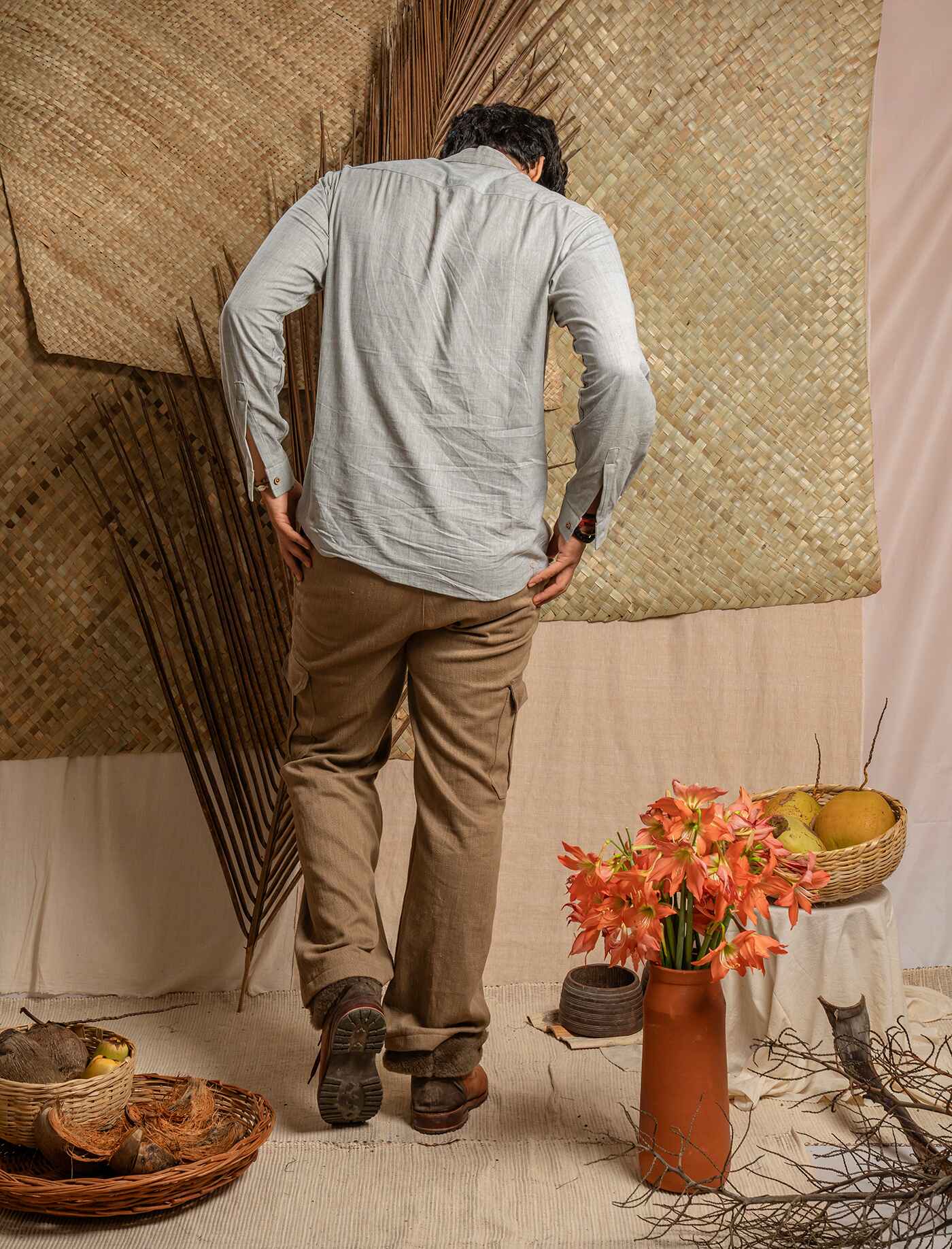 Khadi cotton full length cargo pant with pocket detailing