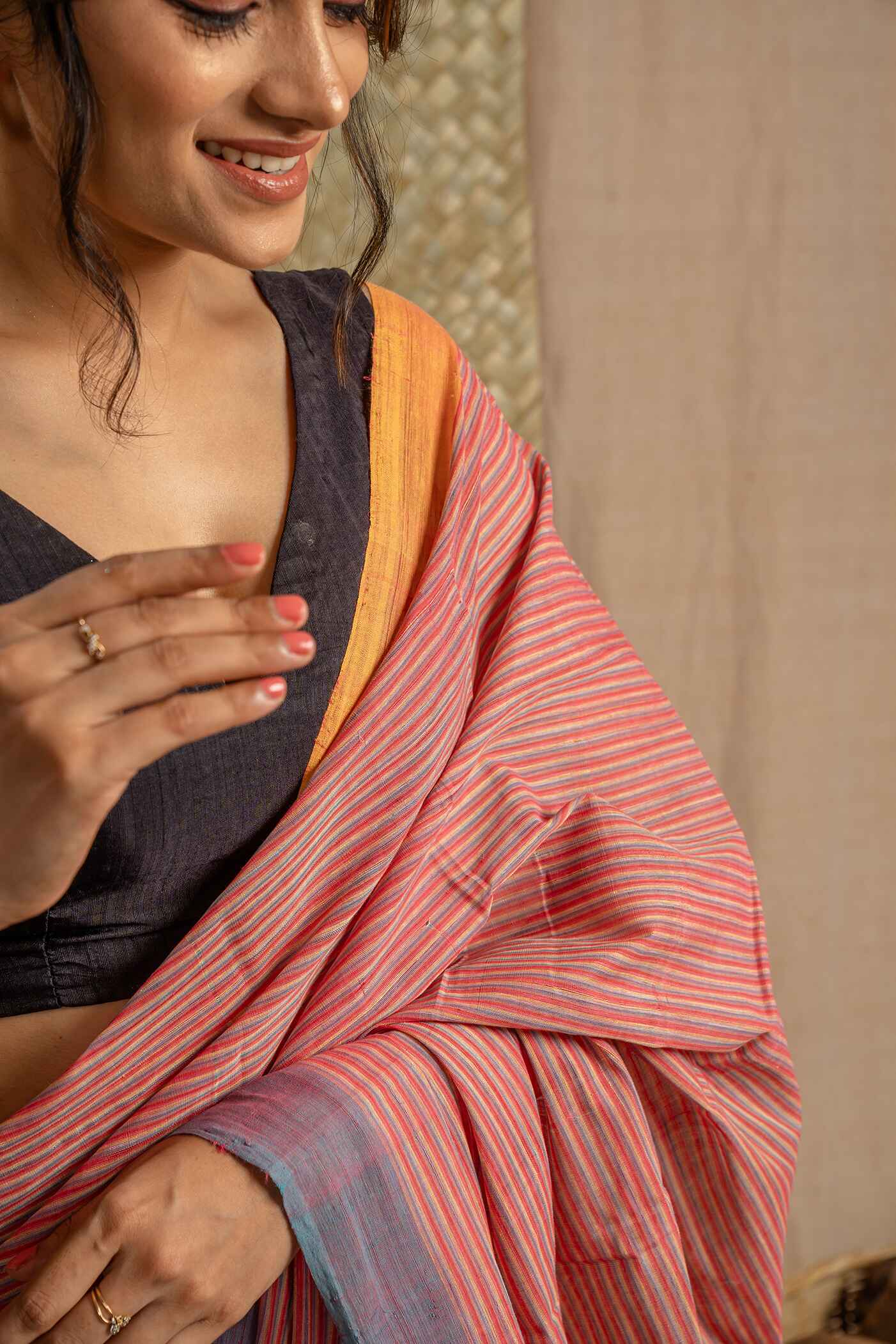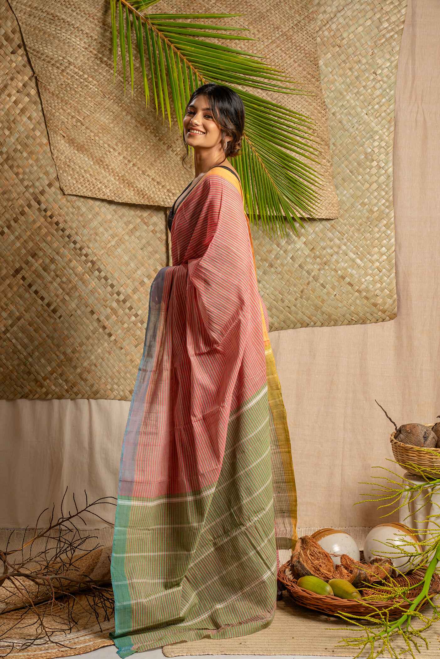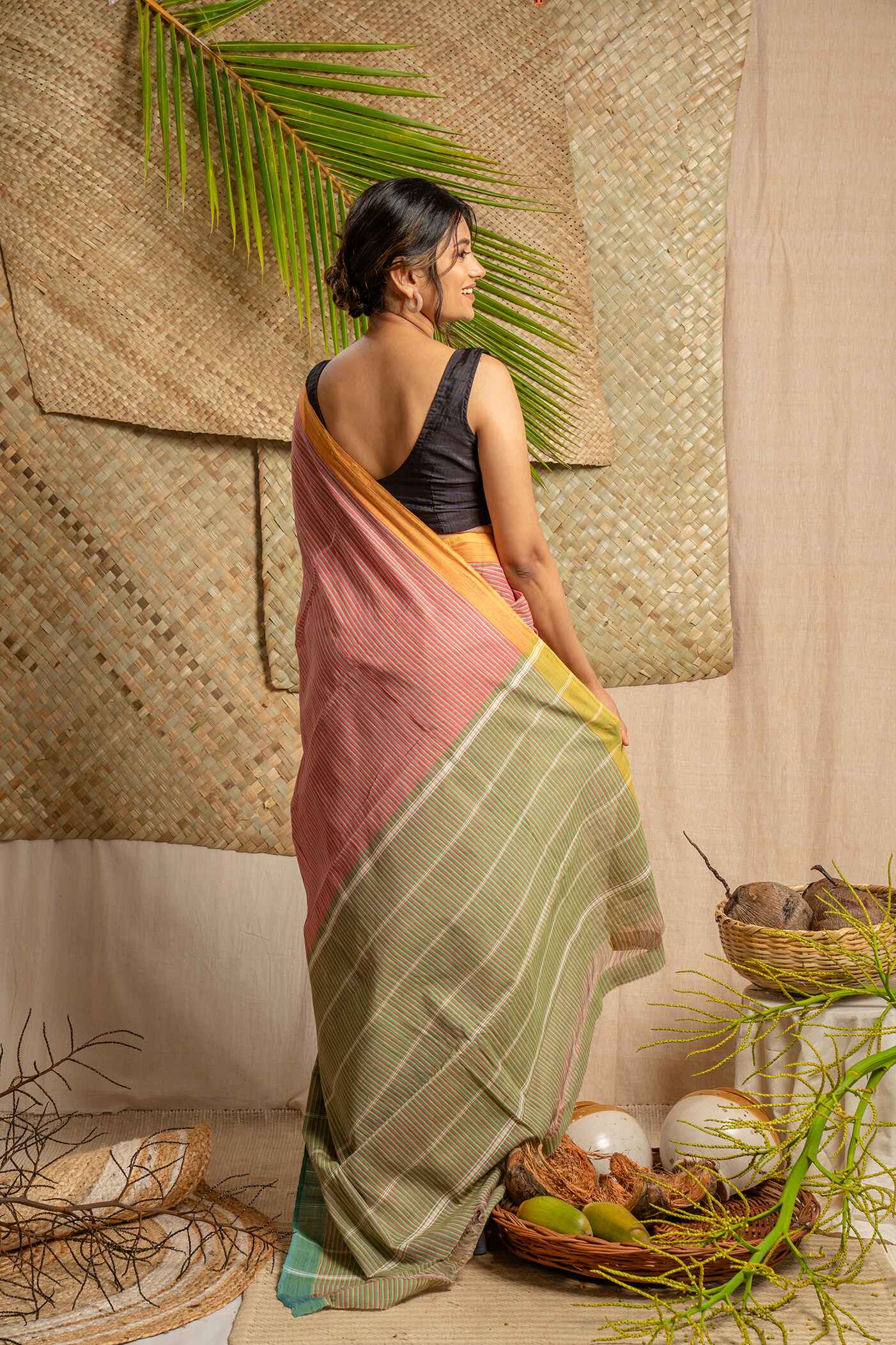 Handwoven Khadi cotton saree showcasing kaleidoscope of colors in harmony, inspired by nature.