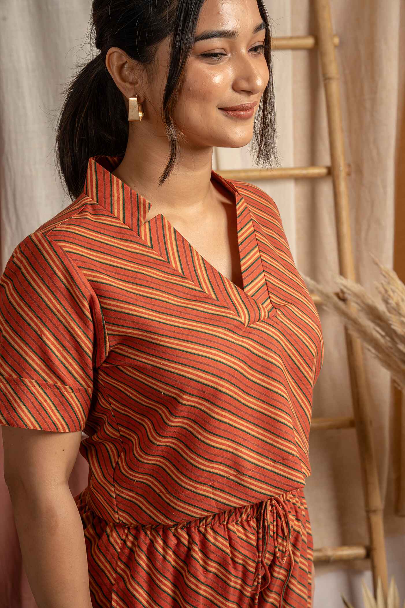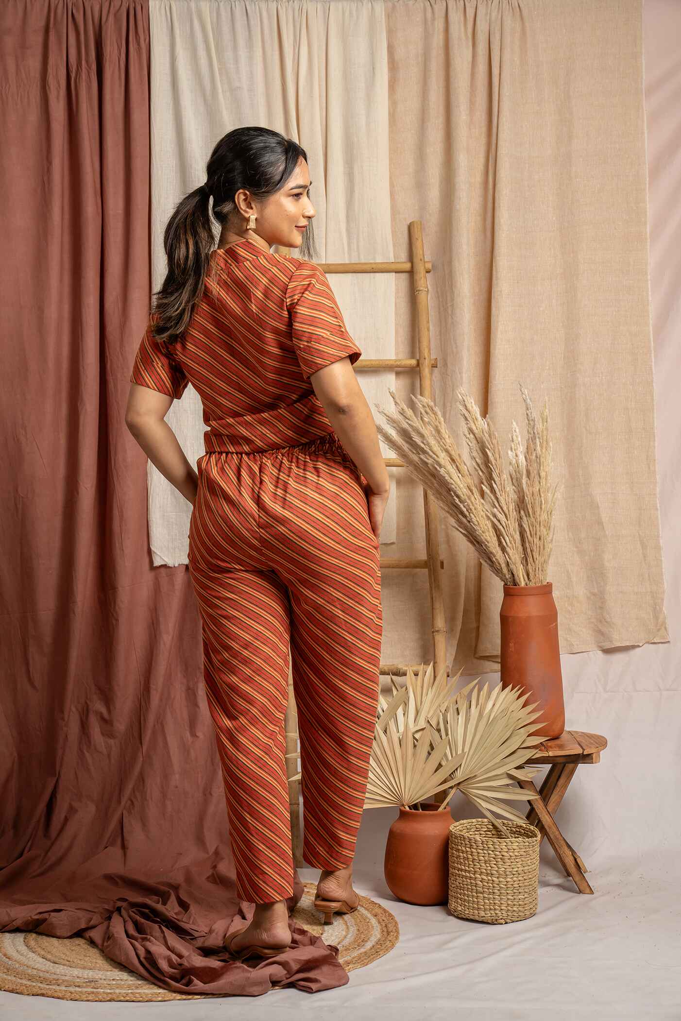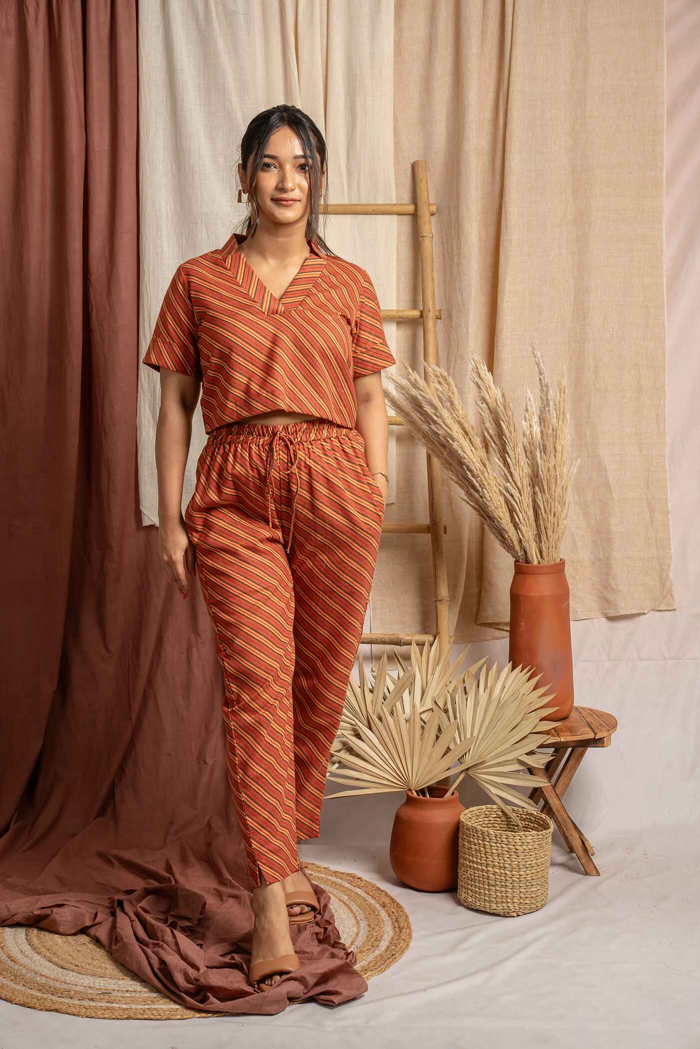 Multi striped relaxed fit Crop top and cigerette pant with pockets.