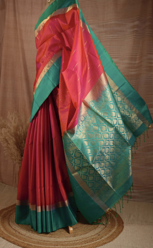 Khadi Silk handwoven Saree with contrast border and matching blouse piece.